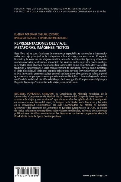 EUGENIA POPEANGA CHELARU es Catedrática de Filología Románica de la Universidad Complutense de Madrid. Es la Directora del Grupo de investigación `La aventura de viajar y sus escrituras¿, que durante años ha aglutinado la investigación en torno a las escrituras del viaje y la imagen de la ciudad en la literatura y las artes en la Universidad Complutense. Ha sido Coordinadora del Máster en Estudios Literarios y del programa de Doctorado en Estudios Literarios en la UCM. Es autora de varios volúmenes monográficos sobre viajeros medievales, así como de numerosas publicaciones científicas centradas en las literaturas románicas comparadas, desde la Edad Media hasta la Época Contemporánea