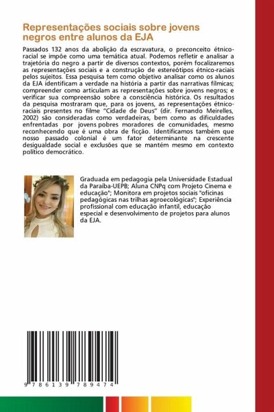 Passados 132 anos da abolição da escravatura, o preconceito étnico-racial se impõe como uma temática atual. Podemos refletir e analisar a trajetória do negro a partir de diversos contextos, porém focalizaremos as representações sociais e a construção de estereótipos étnico-raciais pelos sujeitos. Essa pesquisa tem como objetivo analisar como os alunos da EJA identificam a verdade na história a partir das narrativas fílmicas; compreender como articulam as representações sobre jovens negros; e verificar sua compreensão sobre a consciência histórica. Os resultados da pesquisa mostraram que, para os jovens, as representações étnico-raciais presentes no filme "Cidade de Deus" (dir. Fernando Meirelles, 2002) são consideradas como verdadeiras, bem como as dificuldades enfrentadas por jovens pobres moradores de comunidades, mesmo reconhecendo que é uma obra de ficção. Identificamos também que nosso passado colonial é um fator determinante na crescente desigualdade social e exclusões que se mantém mesmo em contexto político democrático.