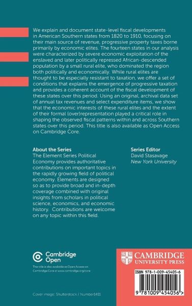 This Element explains and documents state-level fiscal developments in American Southern states from 1820â 1910. Using an original, archival data set of annual tax revenues, we show that the economic interests of rural elites played a critical role in shaping the observed fiscal patterns within and across these states over this period.