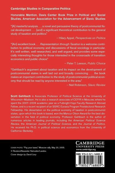 Social scientists teach that politicians favor groups that are organized over those that are not. Representation through Taxation challenges this conventional wisdom. Emphasizing that there are limits to what organized interests can credibly promise in return for favorable treatment, Gehlbach shows that politicians may instead give preference to groups - organized or not. Gehlbach develops this argument in the context of the postcommunist experience, focusing on the incentive of politicians to promote sectors that are naturally more tax compliant, regardless of their organization. In the former Soviet Union, tax systems were structured around familiar revenue sources, magnifying this incentive and helping to prejudice policy against new private enterprise. In Eastern Europe, in contrast, tax systems were created to cast the revenue net more widely, encouraging politicians to provide the collective goods necessary for new firms to flourish.