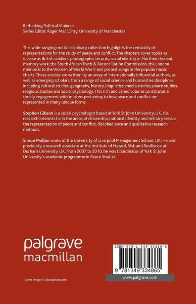 Introduction: Representations of Peace and Conflict; S.Gibson & S.Mollan PART II: PEACE MOVEMENTS AND RESISTANCE Peace Now or Never? Images of Peace in Israel; J.Simons The Return of the 'conchie': Newspaper Representations of Conscientious Objectors and Pacifists in World War II; J.Tulloch What's going on: Anti-war and Pro-war Hits on the Billboard Singles Charts during the Vietnam War Era (1965-1975) and the 'War on Terror' (2001-2010); J.Stewart 'Quakers in khaki': Conscientious Objectors' Resistance to Uniform Clothing in First World War Britain; J.Tynan PART II: MILITARIES AND MILITARIZATION Soldiers' Photographic Representations of Participation in Armed Conflict; R.Woodward & K.N.Jenkings Exploring Representations of the Soldier as Victim: From Northern Ireland to Iraq; R.McGarry & N.Ferguson Supporting the Troops, Serving the Country: Rhetorical Commonplaces in the Representation of Military Service; S.Gibson PART III: PSYCHOLOGICAL DIMENSIONS Make (?) not war! Are the Social Representations of Peace and War Antonyms?; M.Sarrica & J.Wachelke 'Unexpected' and 'inclusive' Social Identities in Intractable Conflict: The Case of Northern Ireland; R.D.Lowe & O.Muldoon PART IV: RELIGIOUS DIMENSIONS Representing 'religious violence': Understanding the Role of Religion as Simplifier and Magnifier of Violent Conflict; L.van Liere The Sacred Icon: Confronting the Anthropocentrism of a Secularized World; P.Kollontai PART V: MEMORY AND MEMORIALIZATION The Representation of Conflict in Modern Memory Work; N.Young War and Peace in the Cloakroom: The Controversy over the Memorial to the Women of World War II; C.Peniston-Bird Representing Apartheid Trauma: The Archive of the TRC Victim Hearings; A.Verdoolaege