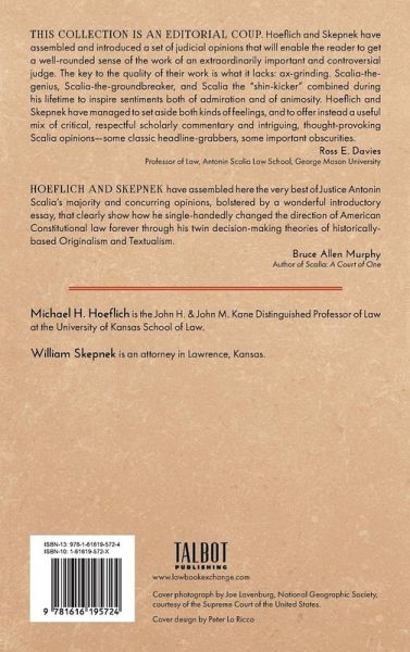 During his thirty years on the United States Supreme Court, the late United States Supreme Court Justice Antonin Scalia left an indelible impression not just for his influential conservative opinions, quick intellect and larger-than-life presence, but for the clarity and grace of his judicial writing style. Scalia’s writings are appreciated as exceptional among judicial opinions not just for the clear reasoning of his legal decisions and viewpoint, but for his sometimes witty, always accessible and carefully chosen language. In this volume the editors have collected some of his most provocative and well-written representative opinions and offer analytic introductions to each set of opinions. They include Scalia’s opinions in the areas of constitutional structure, structure and procedures of the judiciary, fundamental rights and freedoms, rights of the accused, and statutory and treaty interpretation. The book also includes three of Justice Scalia’s important concurrences. Each chapter contains an introduction by the editors. An index to books cited by Scalia offers us the sources of his study on the given opinion. With a general index. xxiv, 474 pp. Published by Talbot Publishing, an imprint of the Lawbook Exchange, Ltd.