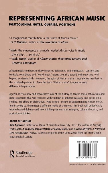 "At times frankly informative, at times darkly ironic, and at times passionately earnest, Representing African Music reads like a resource text, satire, and manifesto all at once...[offers a] trenchant critique of otherwise neutral-seeming representations of African music.. makes many daring statements and reaches a series of alarming conclusions...Those in search of a genuinely global musical discourse...could do much worse than begin their quest by reading Agawu's Representing African Music. His is the unmistakable voice of authentic hope." -- Martin Scherzinger, Current Musicology