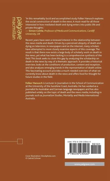 'In this remarkably lucid and accomplished study Folker Hanusch explores the social construction of death in the news. A must-read for all those interested in how mediated death and dying enters into public life and private thoughts.' - Simon Cottle, Professor of Media and Communications, Cardiff University, UK