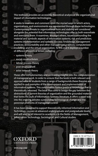 An accessible theoretical analysis of the organizational impact of information technologies. This book examines the many ways in which actors, organizations and technologies are represented through these technologies thus bridging the gap between the abstractions of current theories of organization and the somewhat excessively grounded material on information systems.