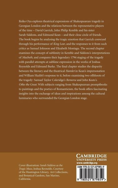 Reiko Oya explores theatrical expressions of Shakespearean tragedy in Georgian London and the relations between the representative players of the time - David Garrick, John Philip Kemble and his sister Sarah Siddons, and Edmund Kean - and their close circle of friends. The book begins by analysing the tragic emotion that Garrick conveyed through his performance of King Lear, and the responses to it from such critics as Samuel Johnson and Elizabeth Montagu. The second chapter examines the concept of sublimity in Kemble and Siddons' interpretations of Macbeth. The final chapter studies the disparity between the literary and the theatrical Hamlet in Kean's impersonation and William Hazlitt's response to it. With subjects ranging from Shakespearean promptbooks to paintings and the poetics of Romanticism, the book offers great insights into the exchange of ideas and inspirations among the cultural luminaries who surrounded the London stage.