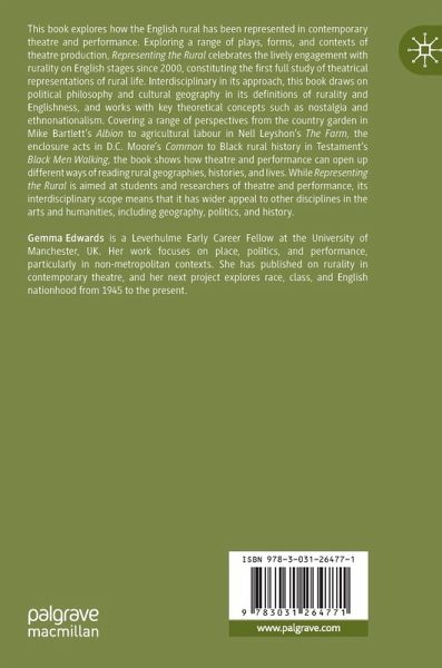 This book explores how the English rural has been represented in contemporary theatre and performance. Exploring a range of plays, forms, and contexts of theatre production, Representing the Rural celebrates the lively engagement with rurality on English stages since 2000, constituting the first full study of theatrical representations of rural life. Interdisciplinary in its approach, this book draws on political philosophy and cultural geography in its definitions of rurality and Englishness, and works with key theoretical concepts such as nostalgia and ethnonationalism. Covering a range of perspectives from the country garden in Mike Bartlett's Albion to agricultural labour in Nell Leyshon's The Farm, the enclosure acts in D.C. Moore's Common to Black rural history in Testament's Black Men Walking, the book shows how theatre and performance can open up different ways of reading rural geographies, histories, and lives. While Representing the Rural is aimed at students and researchers of theatre and performance, its interdisciplinary scope means that it has wider appeal to other disciplines in the arts and humanities, including geography, politics, and history.
