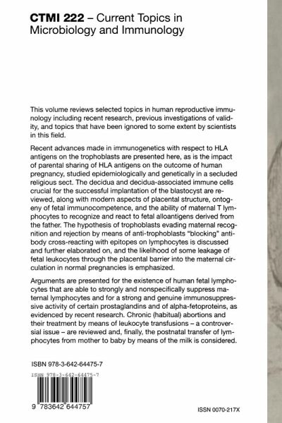 Discrimination of self from nonself is the major function of the immune system and understanding the mechanism(s) involved a main employer of immunologists. Hence, the age-old puzzle of why a fetus that contains a panel of major histocompatibility (MHC) antigens derived from its mother and its father is not rejected (spontaneously aborted) by lymphocytes from its mother who should theoretically recognize foreign MHC molecules from the father has remained of great interest. This dilemma has enticed immunologists and developmental biologists for many years. This volume was created to present the information currently on hand in this subject to the scientific public. The guest editor, Professor Lars Olding, has a long and distinguished history of contributions in this field, having been one of the main propo nents of the argument that lymphocytes from the fetus play an active role in this process by suppressing lymphocytes from the mother from proliferating and thereby acting as killer cells. His work has defined the phenomenon and identified suppressor molecules (factors) involved in the process. In a different but related chapter, Margareta Unander extends such observations to the clinical study of women with repeated "habitual" mIS carriages.