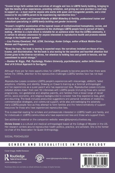 This book explores scholarship on reproductive loss in relation to LGBTQ people, in the context of both pregnancy and adoption, and is essential reading for scholars and professionals interested in LGBTQ health and family, and for individuals from the LGBTQ community who have experienced loss.