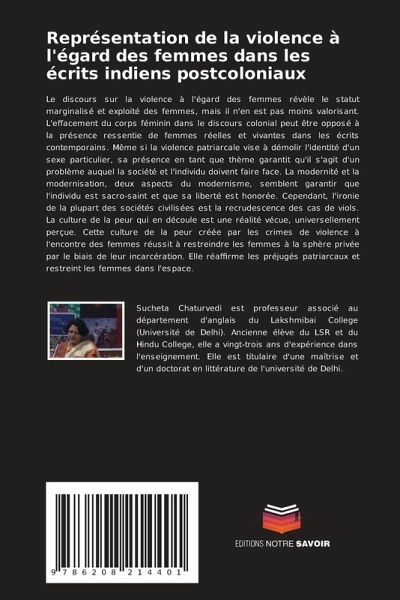 Le discours sur la violence à l'égard des femmes révèle le statut marginalisé et exploité des femmes, mais il n'en est pas moins valorisant. L'effacement du corps féminin dans le discours colonial peut être opposé à la présence ressentie de femmes réelles et vivantes dans les écrits contemporains. Même si la violence patriarcale vise à démolir l'identité d'un sexe particulier, sa présence en tant que thème garantit qu'il s'agit d'un problème auquel la société et l'individu doivent faire face. La modernité et la modernisation, deux aspects du modernisme, semblent garantir que l'individu est sacro-saint et que sa liberté est honorée. Cependant, l'ironie de la plupart des sociétés civilisées est la recrudescence des cas de viols. La culture de la peur qui en découle est une réalité vécue, universellement perçue. Cette culture de la peur créée par les crimes de violence à l'encontre des femmes réussit à restreindre les femmes à la sphère privée par le biais de leur incarcération. Elle réaffirme les préjugés patriarcaux et restreint les femmes dans l'espace.
