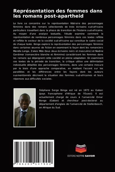 Le livre se concentre sur la représentation littéraire des personnages féminins dans des romans sélectionnés de trois écrivains sud-africains particuliers travaillant dans la phase de transition de l'histoire sud-africaine. Au moyen d'une analyse textuelle, l'étude examine comment la représentation de nombreux personnages féminins dans ces textes reflète et reflète le secteur de la société sud-africaine qui constitue le cadre social de chaque texte. Ibinga explore la représentation des personnages féminins dans certaines oeuvres de fiction en examinant la façon dont les romanciers Mandla Langa, Zakes Mda (tous deux écrivains noirs et masculins) et Nadine Gordimer (romancière blanche et féminine) caractérisent les femmes dans les romans qui dépeignent cette société en pleine adaptation. En examinant ces textes de la période de transition, la critique utilise une délimitation individuelle détaillée des personnages féminins, dans une certaine mesure par le biais d'une approche comparative, en mettant l'accent sur les parallèles et les différences entre les façons dont les auteurs susmentionnés décrivent la situation des femmes sud-africaines et leurs réponses aux difficultés sociales.