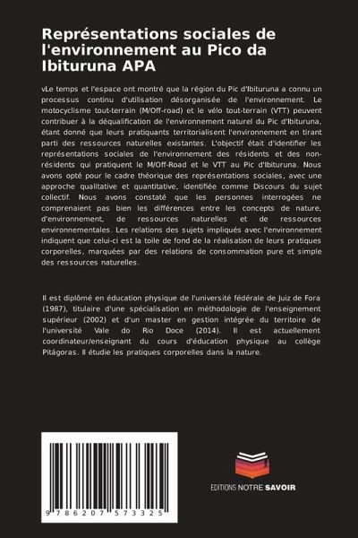 vLe temps et l'espace ont montré que la région du Pic d'Ibituruna a connu un processus continu d'utilisation désorganisée de l'environnement. Le motocyclisme tout-terrain (M/Off-road) et le vélo tout-terrain (VTT) peuvent contribuer à la déqualification de l'environnement naturel du Pic d'Ibituruna, étant donné que leurs pratiquants territorialisent l'environnement en tirant parti des ressources naturelles existantes. L'objectif était d'identifier les représentations sociales de l'environnement des résidents et des non-résidents qui pratiquent le M/Off-Road et le VTT au Pic d'Ibituruna. Nous avons opté pour le cadre théorique des représentations sociales, avec une approche qualitative et quantitative, identifiée comme Discours du sujet collectif. Nous avons constaté que les personnes interrogées ne comprenaient pas bien les différences entre les concepts de nature, d'environnement, de ressources naturelles et de ressources environnementales. Les relations des sujets impliqués avec l'environnement indiquent que celui-ci est la toile de fond de la réalisation de leurs pratiques corporelles, marquées par des relations de consommation pure et simple des ressources naturelles.