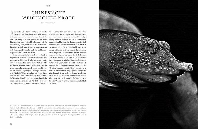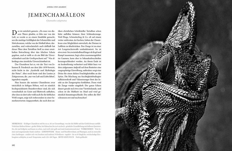 Mit dem Charakter eines Bildbandes zeichnet sich der Titel durch ebenso unterhaltsame und humorvolle wie spannende Texte rund um faszinierende Reptilien aus. Fotograf Tom Krausz versteht es meisterhaft, die bizarren und urzeitlichen Lebewesen gekonnt in Szene zu setzen, und zeigt kunstvolle Porträts in Schwarzweiß. Über 60 Arten werden vorgestellt und von Elke Heidenreich sowie Heiko Werning mit Finesse, Charme und Know-how beschrieben.Ein Nachwort von Prof. Dr. Wolfgang Böhme rundet das außergewöhnliche Werk ab.