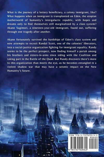 In the second book of this adult science-fiction series, a defiant colony immigrant ostracized by planet Eden's rigid class system joins a clandestine resistance, and she sets out to recruit Randal Scott into their secret war against murderous extremists determined to preserve the status quo. What is the journey of a lottery beneficiary, a colony immigrant, like? What happens when an immigrant is transplanted on Eden, the utopian motherworld of humanity's intergalactic republic, with hopes and dreams only to find themselves still marginalized by a class system? Akane Sugimori, a nineteen-year-old immigrant, found out, suffering through one tragedy after another. Akane fortunately survived the hardships of Eden's class system and now attempts to recruit Randal Scott, one of the colonies' liberators, into a social-justice organization fighting for immigrant equality. Randy seems to be the perfect prospect, now finding himself a pariah among his brothers and sisters-in-arms since siding with the Coalition and taking part in the Battle of the Quad. But Randy discovers there's more to this organization than meets the eye, as he becomes entangled in a violent shadow war that may have a seismic impact on the New Humanity's future.