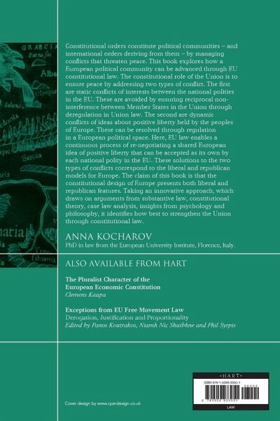 Constitutional orders constitute political communities - and international orders deriving from them - by managing conflicts that threaten peace. This book explores how a European political community can be advanced through EU constitutional law. The constitutional role of the Union is to ensure peace by addressing two types of conflict. The first are static conflicts of interests between the national polities in the EU. These are avoided by ensuring reciprocal non-interference between Member States in the Union through deregulation in Union law. The second are dynamic conflicts of ideas about positive liberty held by the peoples of Europe. These can be resolved through regulation in a European political space. Here, EU law enables a continuous process of re-negotiating a shared European idea of positive liberty that can be accepted as its own by each national polity in the EU. These solutions to the two types of conflicts correspond to the liberal and republican models for Europe. The claim of this book is that the constitutional design of Europe presents both liberal and republican features. Taking an innovative approach, which draws on arguments from substantive law, constitutional theory, case law analysis, insights from psychology and philosophy, it identifies how best to strengthen the Union through constitutional law.