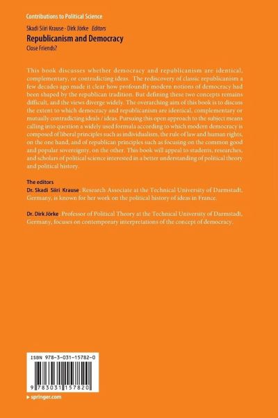This book discusses whether democracy and republicanism are identical, complementary, or contradicting ideas. The rediscovery of classic republicanism a few decades ago made it clear how profoundly modern notions of democracy had been shaped by the republican tradition. But defining these two concepts remains difficult, and the views diverge widely. The overarching aim of this book is to discuss the extent to which democracy and republicanism are identical, complementary or mutually contradicting ideals / ideas. Pursuing this open approach to the subject means calling into question a widely used formula according to which modern democracy is composed of liberal principles such as individualism, the rule of law and human rights, on the one hand, and of republican principles such as focusing on the common good and popular sovereignty, on the other. This book will appeal to students, researches, and scholars of political science interested in a better understanding of politicaltheory and political history.