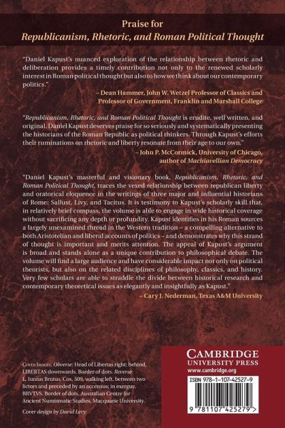 Republicanism, Rhetoric, and Roman Political Thought develops readings of Rome's three most important Latin historians - Sallust, Livy and Tacitus - in light of contemporary discussions of republicanism and rhetoric. Drawing on recent scholarship as well as other classical writers and later political thinkers, this book develops interpretations of the three historians' writings centering on their treatments of liberty, rhetoric, and social and political conflict. Sallust is interpreted as an antagonistic republican, for whom elite conflict serves as an outlet and channel for the antagonisms of political life. Livy is interpreted as a consensualist republican, for whom character and its observation helps to maintain the body politic. Tacitus is interpreted as being centrally concerned with the development of prudence and as a subtle critic of imperial rule.