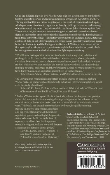 Barbara F. Walter is Professor of Political Science in the Graduate School of International Relations and Pacific Studies at the University of California, San Diego. She is the author of Committing to Peace: The Successful Settlement of Civil Wars (2001), and co-editor of Territoriality and Conflict in an Era of Globalization (Cambridge, 2006) and Civil Wars, Insecurity and Intervention (1999).