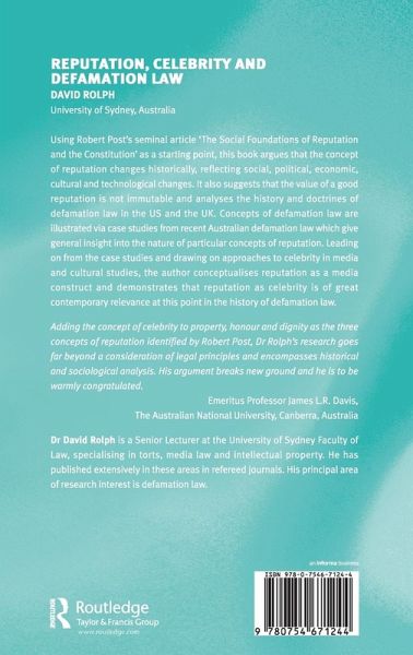 Taking Robert Post's seminal article 'The Social Foundations of Reputation and the Constitution' as a starting point, this volume examines how the concept of reputation changes to reflect social, political, economic, cultural and technological developments. It suggests that the value of a good reputation is not immutable and analyzes the history and doctrines of defamation law in the US and the UK. A selection of Australian case studies illustrates different concepts of defamation law and offers insights into their specific nature. Drawing on approaches to celebrity in media and cultural studies, the author conceptualizes reputation as a media construct and explains how reputation as celebrity is of great contemporary relevance at this point in the history of defamation law.