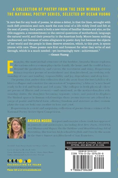 ?A rare feat for any book of poems, let alone a debut, in that the lines, wrought with such deft precision and care, mark the sum total of a life richly lived and felt at the seat of poetry...These poems care, first and foremost, for what they write of and through, which is a much needed?yet increasingly rare?achievement.? -- Ocean Vuong Engaging the matriarchal structure of the beehive, Amanda Moore explores the various roles a woman plays in the family, the home, and the world at large. Beyond the productivity and excess, the sweetness and sting, Requeening brings together poems of motherhood and daughterhood, an evolving relationship of care and tending, responsibility and joy, dependence and deep love. The poems that anchor this collection don't shy away from the inevitability of a hive's collapse and consider the succession of ?requeening? a hive as ?a new heart ready to be fed and broken and fed again.? The collapse is both physical?there are poems of illness and recovery?and emotional, as the mother-daughter relationship shifts, the daughter becoming separate, whole, and poised to displace. The liminal spaces these poems traverse in human relationships is echoed in a range of poetic and hybrid form, offering freedom and stricture as they contemplate the way we hold one another in love and grief. Requeening is a vivid and surprising collection of poems from a winner of the National Poetry Series Open Competition.