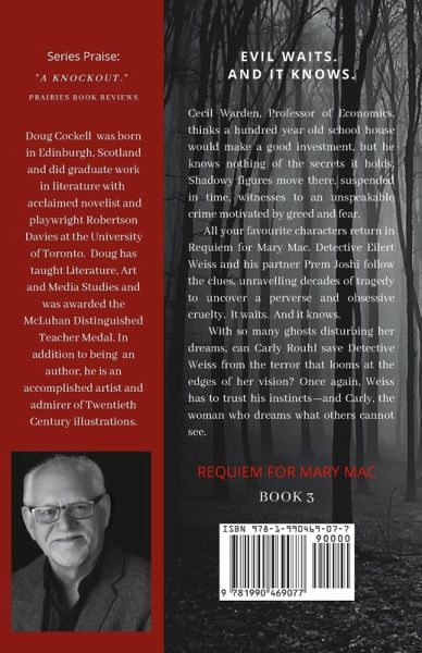 Cockell rewards readers with another mind twisting mystery. Cecil Warden, Professor of Economics, thinks a hundred year old school house would make a good investment, but he knows nothing of the secrets it holds. Shadowy figures move there, suspended in time, witnesses to an unspeakable crime motivated by greed and fear. All your favourite characters return in Requiem for Mary Mac. Detective Eilert Weiss and his partner Prem Joshi follow the clues, unravelling decades of tragedy to uncover a perverse and obsessive cruelty. It waits. And it knows. With so many ghosts disturbing her dreams, can Carly Rouhl save Detective Weiss from the terror that looms at the edges of her vision? Once again, Weiss has to trust his instincts-and Carly, the woman who dreams what others cannot see. Go ahead and grab your copy, then settle in for another page turning supernatural mystery by Douglas Cockell. This third book in the Requiem Series will take you on a spectacular ride. Filled with intrigue and mystery, Requiem for Mary Mac will have you hooked from the first page.