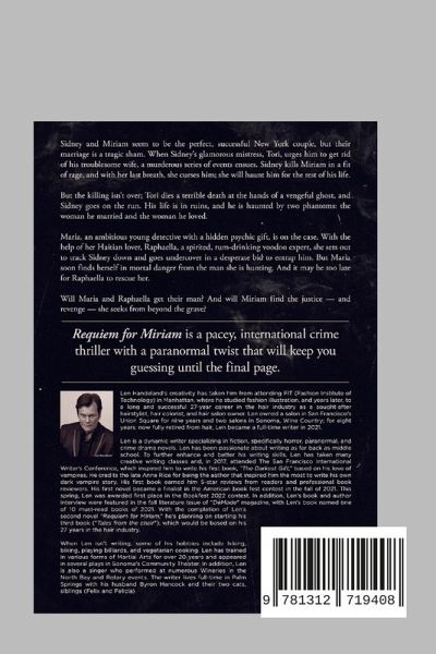 Sidney and Miriam seem to be the perfect, successful New York couple, but their marriage is a tragic sham. When Sidney's glamorous mistress, Tori, urges him to get rid of his troublesome wife, a murderous series of events ensues. Sidney kills Miriam in a fit of rage, and with her last breath, she curses him; she will haunt him for the rest of his life. But the killing isn't over; Tori dies a terrible death at the hands of a vengeful ghost, and Sidney goes on the run. His life is in ruins, and he is haunted by two phantoms: the woman he married and the woman he loved. Maria, an ambitious young detective with a hidden psychic gift, is on the case. With the help of her Haitian lover, Raphaella, a spirited, rum-drinking voodoo expert, she sets out to track Sidney down and goes undercover in a desperate bid to entrap him. But Maria soon finds herself in mortal danger from the man she is hunting. And it may be too late for Raphaella to rescue her. Will Maria and Raphaella get their man? And will Miriam find the justice - and revenge - she seeks from beyond the grave? Requiem for Miriam is a pacey, international crime thriller with a paranormal twist that will keep you guessing until the final page.