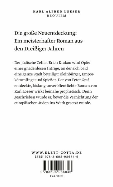 Der jüdische Cellist Erich Krakau wird Opfer einer gnadenlosen Intrige, an der sich bald eine ganze Stadt beteiligt: Kleinbürger, Emporkömmlinge und Spießer. Der von Peter Graf entdeckte, bislang unveröffentlichte Roman von Karl Loeser wirkt beinahe prophetisch. Denn geschrieben wurde er, bevor die Vernichtung der europäischen Juden ins Werk gesetzt wurde.
