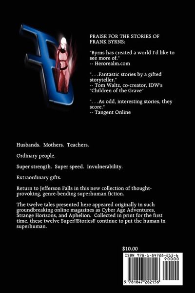 Husbands. Mothers. Teachers. Ordinary People. Super strength. Super speed. Invulnerability. Extraordinary gifts. Return to Jefferson Falls in this new collection of thought-provoking, genre-bending superhuman fiction. The twelve tales presented here originally appeared in such award-winning online magazines as "Strange Horizons", "Cyber Age Adventures", and "Aphelion". Collected in print for the first time, these Super!!Stories!! continue to put the human in superhuman.