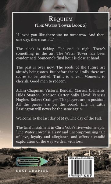 "I loved you like there was no tomorrow. And then, one day, there wasn't..." The clock is ticking. The end is nigh. There's something in the air. The Water Tower has been condemned. Someone's final hour is close at hand. The past is over now. The seeds of the future are already being sown. But before the bell tolls, there are scores to be settled. Truths to unveil. Moments to cherish. Good men to redeem. Adam Chapman. Victoria Kendall. Clarissa Clements. Hilda Stanton. Madison Carter. Sally Lloyd. Vanessa Hughes. Robert Grainger. The players are in position. All the pieces are on the board. Life in Little Bassington will never be the same again. Welcome to the last day of May. The day of the Fall. The final instalment in Chris Vobe's five-volume epic, 'The Water Tower' is a raw and uncompromising tale of love, loyalty and allegiance, and offers a candid exploration of the way we deal with loss.