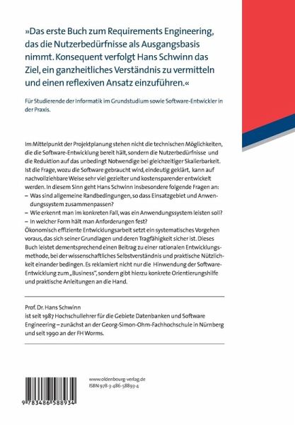 Das erste Buch zum Requirements Engineering, das die Nutzerbedürfnisse als Ausgangsbasis nimmt. Dabei verfolgt Hans Schwinn konsequent das Ziel, ein ganzheitliches Verständnis zu vermitteln und einen reflexiven Ansatz beim Problembereich "Requirements Engineering" einzuführen.
