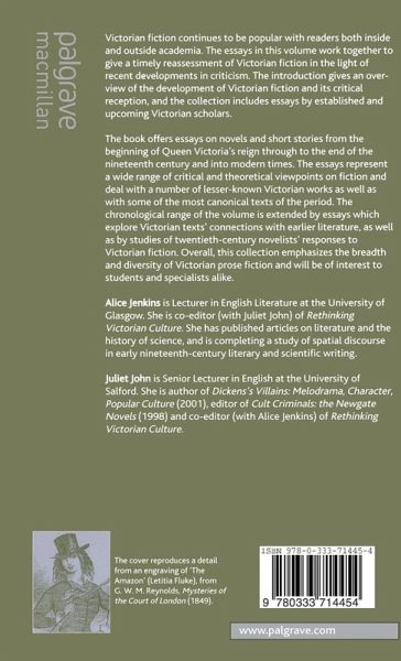Foreword; J.Sutherland List of Illustrations Acknowledgements Notes on Contributors Introduction: A.Jenkins and J.John Victorian Realistic Prose and Sentimentality: P.Davis Having the Whip-hand in Middlemarch ; D.Karlin Two Kinds of Clothing: Sartor Resartus and Great Expectations ; B.Beatty Re-reading G.W.Reynolds' the Mysteries of London ; T.Thomas The State of Dracula : Bureaucracy and the Vampire; G.Day The Godhead Regendered in Victorian Children's Literature; J.M. Labbe Alice : Reflections and Relativities; M.Irwin Place. Identity and Born in Exile ; R.Pite Stages of Sand and Blood: the Performance of Gendered Subjectivity in Olive Schreiner's Colonial Allegories; S.McCracken Sexual Ethics in Fiction by Thomas Hardy and the New Woman Writers; J.Larson Don Pickwick: Dickens and the Transformations of Cervantes; A.Easson Using the Victorians: the Victorian Age in Contemporary Fiction; R.Gilmour Women, Spiritualism and Depth Psychology in Michèle Robert's Victorian Novel; S.Rowland Index