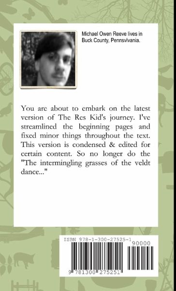 You are about to embark on the latest version of The Res Kid's journey. I've streamlined the beginning pages and fixed minor things throughout the text. This version is condensed & edited for certain content. So no longer do the "The intermingling grasses of the veldt dance..."