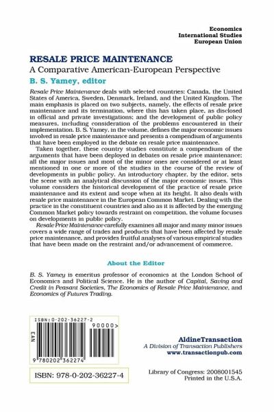Resale Price Maintenance deals with selected countries: Canada, the United States of America, Sweden, Denmark, Ireland, and the United Kingdom. The main emphasis is placed on two subjects, namely, the effects of resale price maintenance and its termination, where this has taken place, as disclosed in official and private investigations; and the development of public policy measures, including consideration of the problems encountered in their implementation. B. S. Yamey, in the volume, defines the major economic issues involved in resale price maintenance and presents a compendium of arguments that have been employed in the debate on resale price maintenance. Taken together, these country studies constitute a compendium of the arguments which have been deployed in debates on resale price maintenance; all the major issues and most of the minor ones are considered or at least mentioned in one or more of the studies in the course of the review of developments in public policy. An introductory chapter, by the editor, sets the scene with an analytical discussion of the major economic issues. This volume considers the historical development of the practice of resale price maintenance and its extent and scope when at its height. It also deals with resale price maintenance in the European Common Market. Dealing with the practice in the constituent countries and also as it is affected by the emerging Common Market policy towards restraint on competition, the volume focus on developments in public policy. Resale Price Maintenance carefully examines all major and many minor issues covers a wide range of trades and products that have been affected by resale price maintenance, and provides fruitful analyses of various empirical studies that have been made on the restraint and/or advancement of commerce.