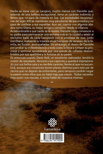 Nadie se mete con un Langton, mucho menos con Danielle que, además de una belleza excepcional, tiene un carácter indómito y férreo que no para de meterla en líos. Las sociedades neoyorquinas del siglo XIX se mantienen muy pendiente de sus enredos y no para de cotillear a sus espaldas. Aun así, cuenta con algunos aliados como Diana, su mejor amiga y cómplice desde la infancia. Acostumbrada a que nadie se le resista, Danielle logra convencer a su padre para permanecer una semana más en la ciudad y asistir al exclusivo baile de Lady Lampwick con la promesa de que, junto con Diana, realizarán la travesía anual hacienda de veraneo de la familia, en Tucson, acompañadas. Sin embargo, el deseo de Danielle por probar su independencia a toda costa la lleva a romper su promesa y terminar secuestrada por una panda de rufianes deslumbrados por sus apellidos y la fortuna de su padre. Es entonces cuando Dave Holt, un excelente rastreador, tendrá la misión de rescatarla. Vencerá a sus captores y quedará impresionado por sus bellos ojos y su terrible carácter, frente al que no sucumbirá, aunque sus corazones tienen planes distintos para este par de necios que no dejarán de enfrentarse, pero tampoco podrán negar la pasión entre ellos que no hace más que crecer. Todos necesitamos quien nos rescate, a veces hasta de nosotros mismos.