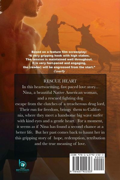 The dog let out a slight whimper as he scanned all around him. "He's not here. I promise." Nina tried to comfort him. Nina could almost see his heart beating through his thick fur. "He isn't going to find us. Don't worry... It will be ok." Nina told the dog. She attempted to convince herself that was true as well. Nina and the dog sat silently together for a while regaining their composure. The soothing sound of the ocean waves helped them escape, at least for today, from those terrible thoughts of the bad-man. Based on a feature film screenplay: "A very gripping hook with high stakes. The tension is maintained well throughout. It is very fast-paced and engaging, the (reader) will be engrossed from the start." Coverfly In this heartwarming, fast paced love story... Nina, a beautiful Native American woman,and a rescued fighting dog escape from the clutches of a treacherous drug lord, Their run for freedom, brings them to California, where they meet a handsome big wave surfer with kind eyes and a gentle heart. For a moment, it seems as if Nina has found a second chance at a better life. But her past comes back to haunt her in this gripping story of hope, redemption, retribution and the true meaning of love. She sighed as she contemplated the sand between her toes. Something felt oddly familiar to her, yet in truth, it was unlike anything she had ever seen, or felt before. It was different from the hot dry desert sand from where she was born. The Navajo Nation's poorest reservation. Well, they called it a "reservation", but for her, it had felt like prison. She loved her family. She loved her indigenous roots. God she loved it. She was proud of that part. But on the reservation, there was no running water. Often no electricity. The rest of the world was living and thriving, but for Nina, and her tribe, everything started to seem unobtainable. Savin's dangerously handsome good looks, and end-less supply of drugs and alcohol filled her needs with ease. And then there was his money. Lots of it. Drug money.