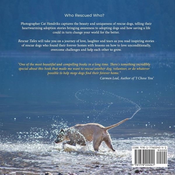 Rescue Tales A Photographic Journey of Rescue Dogs and their Beautiful Adoption Stories Photographer, Cat Hendriks captures the beauty and uniqueness of rescue dogs, telling their heartwarming adoption stories in order to bring awareness to adopting dogs and how saving a life could in turn change your world for the better. Who Rescued Who? This book will take you on a journey of love, laughter and tears as you read inspiring stories of rescue dogs who found their forever homes with lessons on how to love unconditionally, overcome challenges and help each other to grow. These Rescue Dogs are adopted from all around the world with their happy endings in British Columbia, Canada. A portion of the proceeds from the sales of the book will be donated to local rescue organizations. These true stories make a wonderful gift for:-Dog lovers Rescue dog owners Inspiring people to adopt Teaching your children about hardship and acceptance Insight into Rescuing Dogs Lessons in overcoming disabilities and challenges New beginnings - leaving a difficult past behind Supporting Rescue Organizations