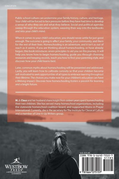 Public school culture can undermine your family history, culture, and heritage. Your child will be forced to face pressures before they have had time to develop a sense of who they are and what they believe. Social and political agendas sweep through the education system, weaving their way into the textbooks and into your child's mind. When it comes to your child's education, you should never settle for just good enough. The outcome is going to affect your family, your community, and them for the rest of their lives. Homeschooling is an adventure, and it isn't as out of reach as it seems. If you are thinking about homeschooling, or have already begun, this book introduces seven principles to aid you on this journey. It will help you know how to begin homeschooling, guide you through choosing resources and keeping records, teach you how to find your parenting style, and discover how your child learns best. Later, common myths about homeschooling will be presented and addressed. Lastly, you will learn how to cultivate curiosity so that your children become self-motivated to seek opportunities of all types to embrace learning throughout their lifetime. The choices you make now for your children's education can have a lifelong impact. Discover how homeschooling fosters a passion for learning and a bright future.
