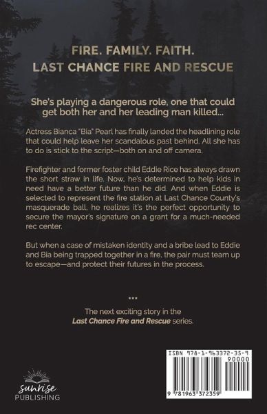 Actress Bianca "Bia" Pearl has finally landed the headlining role that could help leave her scandalous past behind. All she has to do is stick to the script-both on and off camera. Firefighter and former foster child Eddie Rice has always drawn the short straw in life. Now, he's determined to help kids in need have a better future than he did. And when Eddie is selected to represent the fire station at Last Chance County's masquerade ball, he realizes it's the perfect opportunity to secure the mayor's signature on a grant for a much-needed rec center. But when a case of mistaken identity and a bribe lead to Eddie and Bia being trapped together in a fire, the pair must team up to escape-and protect their futures in the process.