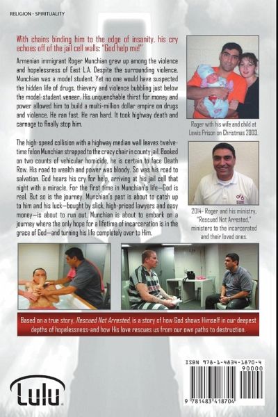 With chains binding him to the edge of insanity, his cry echoes off of the jail cell walls: "God help me!" Armenian immigrant Roger Munchian grew up among the violence and hopelessness of East L.A. Despite the surrounding violence, Munchian was a model student. Yet no one would have suspected the hidden life of drugs, thievery and violence bubbling just below the model-student veneer. His unquenchable thirst for money and power allowed him to build a multi-million dollar empire on drugs and violence. He ran fast. He ran hard. It took highway death and carnage to finally stop him. The high-speed collision with a highway median wall leaves twelve-time felon Munchian strapped to the crazy chair in county jail. Booked on two counts of vehicular homicide, he is certain to face Death Row. His road to wealth and power was bloody. So was his road to salvation. God hears his cry for help, arriving at his jail cell that night with a miracle. For the first time in Munchian's life-God is real. But so is the journey.