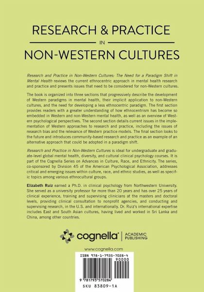 Research and Practice in Non-Western Cultures: The Need for a Paradigm Shift in Mental Health reviews the current ethnocentric approach in mental health research and practice and presents issues that need to be considered for non-Western cultures. The book is organized into three sections that progressively describe the development of Western paradigms in mental health, their implicit application to non-Western cultures, and the need for developing a less ethnocentric paradigm. The first section provides readers with a greater understanding of how ethnocentrism has become so embedded in Western and non-Western mental health, as well as an overview of Western psychological perspectives. The second section details current issues in the implementation of Western approaches to research and practice, including the issues of research bias and the relevance of Western practice models. The final section looks to the future and introduces community-based research and practice as an example of an alternative approach that could be adopted in a paradigm shift. Research and Practice in Non-Western Cultures is ideal for undergraduate and graduate-level global mental health, diversity, and cultural clinical psychology courses. It is part of the Cognella Series on Advances in Culture, Race, and Ethnicity. The series, co-sponsored by Division 45 of the American Psychological Association, addresses critical and emerging issues within culture, race, and ethnic studies, as well as specific topics among various multicultural groups.