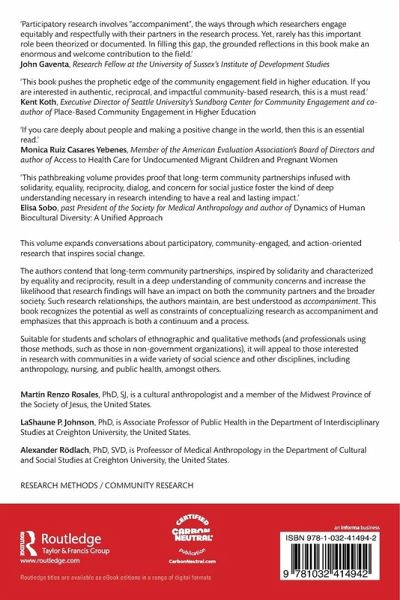 "This pathbreaking volume provides proof that long-term community partnerships infused with solidarity, equality, reciprocity, dialog, and concern for social justice foster the kind of deep understanding necessary in research intending to have a real and lasting impact. Using liberation theology's accompaniment lens as a focusing device, this expertly edited collection expands upon basic concepts such as service, care, and participation but also more complex constructs such as deep listening, epistemological humility, horizontality, radical empathy, and relational responsibility, illuminating a new model for community-based participatory action research. In doing so it offers a new non-extractive research ethic-one profoundly well-suited to the problems today's social scientists-and communities-must confront."