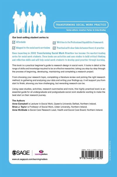 Social work research often focuses on qualitative designs and many students believe that the quantitative research pathway is either too complicated or is beyond their grasp. This book outlines how social work students can undertake a research project from either a qualitative, quantitative or mixed methodological approach. The authors introduce key concepts in an accessible and structured manner and go on to demonstrate each of the approaches from inception of research idea, to realisation of methodological approach, to research process, to data analysis and conclusion. More than just another research text, this book remains grounded in social work practice and has clear links to the Professional Capabilities Framework for Social Work.