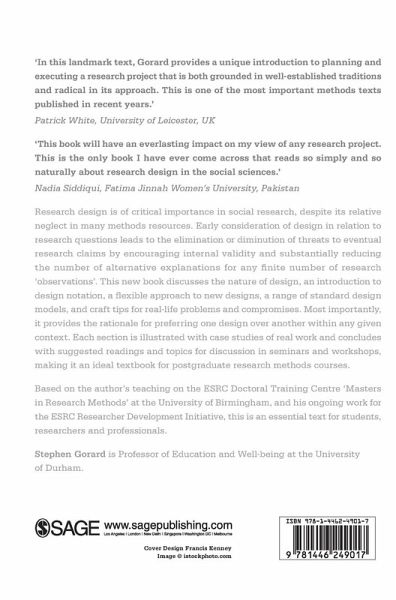 Based on the author's teaching on the ESRC Doctoral Training Centre "Masters in Research Methods" at the University of Birmingham, and his ongoing work for the ESRC Researcher Development Initiative, this is an essential text for postgraduate researchers and academics. There is no book like Research Design on the market that addresses all of these issues in an easy to comprehend style, for those who want to design research and make critical judgements about the designs of others.