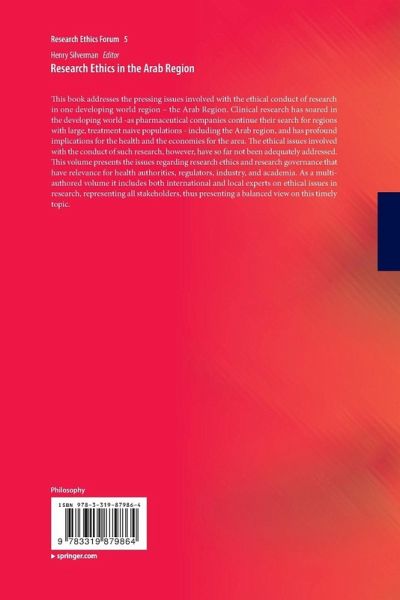 Introduction to ethical issues in research in the Middle East; Henry Silverman, Thalia Arawi.- A Review of International Guidelines: Controversial Issues; Henry Silverman.- National Guidelines in the Middle East; Ghiath Alahmad.- Bioethicist Islamic Bioethics; Thalia Arawi.- Globalization and Research Ethics Systems in the Middle East Hillary Edwards Current state of research ethics capacity in the Middle East and Current Gaps; Henry Silverman.- The Regulatory Framework and Capacity Case Studies from Jordan, Egypt, Saudi Arabia, Morocco, etc; Vladimir Misik.- Quintiles Issues in research from perspectives of Health Authorities: Experience from Jordan, Dubai, Egypt, Saudi Arabia, Qatar TBD Building Clinical Trial Site Capabilities; Samer El-Kamary and Nadia Zaki.- Recruitment of Participants/Therapeutic Misconception TBD Issues in Informed Consent; Noha Asem and Tamer Hifnawy.- Gender Issues/Cultural Issues; Amal Matar/Thalia Arawi.- Genetic Issues and Biobanks; Ghiath Alahmad.- Research Involving Children; Jihad Makhou.- Refugee Research; Rema Afifi.- Community Participatory Research TBD Health Services Research; Sherine Shawky.- (AUC) Observational Studies TBD International Issues: Avoiding Exploitation Henry Silverman Good Clinical Practice; Tamer Hifnawy.- Responsible Conduct in Research; Thalia Arwai.- Challenges to operations of RECs; Hany Sleem.- Building REC networks; Azza Salah.- Enhancing Patients' Rights Thalia Arawi Assessment of RECs; Henry Silverman.- Perspectives of Investigators towards Research Ethics (summary of current research); Noha Asem.- Teaching Research Ethics; Henk ten Have.