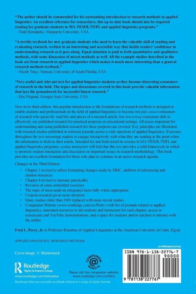 Now in its third edition, this popular introduction to the foundations of research methods is designed to enable students and professionals in the field of applied linguistics to become not just casual consumers of research who passively read bits and pieces of a research article, but discerning consumers able to effectively use published research for practical purposes in educational settings. All issues important for understanding and using published research for these purposes are covered. Key principles are illustrated with research studies published in refereed journals across a wide spectrum of applied linguistics. Exercises throughout the text encourage readers to engage interactively with what they are reading at the point when the information is fresh in their minds. Intended for and field-tested in courses in MA-TESOL/TEFL and applied linguistics programs, course instructors will find that this text provides a solid framework in which to promote student interaction and discussion on important issues in research methodology. This book provides an excellent foundation for those who plan to continue in an active research agenda.