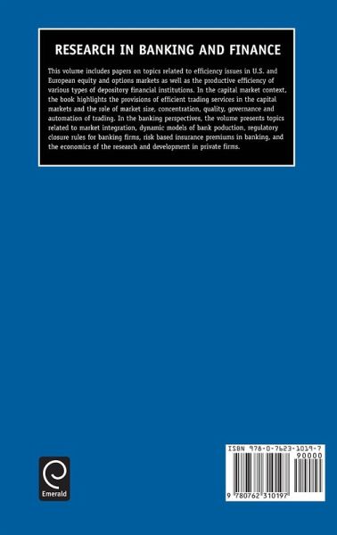 Includes papers on topics related to efficiency issues in US and European equity and options markets, as well as the productive efficiency of various types of depository financial institutions. In the capital market context, this book highlights the provisions of efficient trading services in the capital markets.