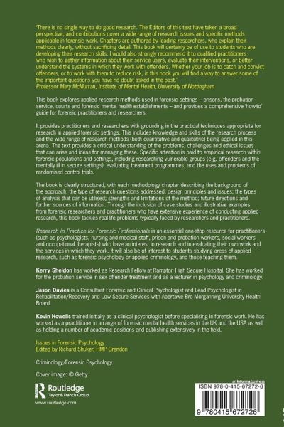 This book explores the use of applied research methods used in forensic settings and provides a 'how-to' book for forensic practitioners and researchers. Editors have backgrounds as both practitioners and researchers.