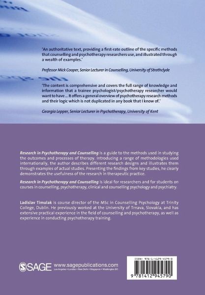 "Timulak's aims, to clarify research and its value for practice, and to alert people to its 'limitations and potential misuse', have certainly been achieved. This book deserves a place in every professional library and I recommend it to anyone who is interested in understanding more about research" - Therapy Today, May 2009 'An authoritative text, providing a first-rate outline of the specific methods that counselling and psychotherapy researchers use, and illustrated through a wealth of examples' - Professor Mick Cooper, Senior Lecturer in Counselling, University of Strathclyde 'The content is comprehensive and covers the full range of knowledge and information that a trainee psychologist/psychotherapy researcher would want to have... It offers a general overview of psychotherapy research methods and their logic which is not duplicated in any book that I know of' - Georgia Lepper, Senior Lecturer in Psychotherapy, University of Kent Research in Psychotherapy and Counselling is a guide to methods used in studying the outcomes and processes of therapy. Introducing a range of methodologies which are used internationally, the author describes different research designs and illustrates them through examples of actual studies. Presenting the findings from key studies, he clearly demonstrates the usefulness of the research in therapeutic practice. Research in Psychotherapy and Counselling is ideal for researchers and for students on courses in counselling, psychotherapy, clinical and counselling psychology and psychiatry. Ladislav Timulak is course director of the MSc in Counselling Psychology at Trinity College, Dublin. He previously worked at the University of Trnava, Slovakia, and has extensive practical experience in the field of counselling and psychotherapy, as well as experience in conducting psychotherapy training.