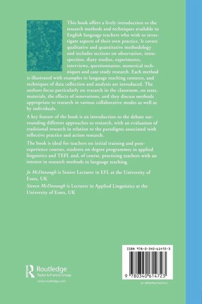 This book offers a lively introduction to the research methods and techniques available to English language teachers who wish to investigate aspects of their own practice. It covers qualitative and quantitative methodology and includes sections on observation, introspection, diary studies, experiments, interviews, questionnaires, numerical techniques and case study research. Each method is illustrated with examples in language teaching contexts, and techniques of data collection and analysis are introduced. The authors focus particularly on research in the classroom, on tests, materials, the effects of innovations, and they discuss methods appropriate to research in various collaborative modes as well as by individuals. A key feature of the book is an introduction to the debate surrounding different approaches to research, with an evaluation of traditional research in relation to the paradigms associated with reflective practice and action research. The book is ideal for teachers on initial training and post-experience courses, students on degree programmes in applied linguistics and TEFL and, of course, practising teachers with an interest in research methods in language teaching.