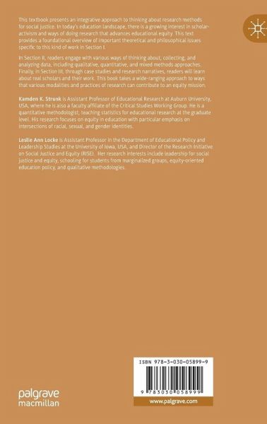 This textbook presents an integrative approach to thinking about research methods for social justice. In today's education landscape, there is a growing interest in scholar-activism and ways of doing research that advances educational equity. This text provides a foundational overview of important theoretical and philosophical issues specific to this kind of work in Section I. In Section II, readers engage with various ways of thinking about, collecting, and analyzing data, including qualitative, quantitative, and mixed methods approaches. Finally, in Section III, through case studies and research narratives, readers will learn about real scholars and their work. This book takes a wide-ranging approach to ways that various modalities and practices of research can contribute to an equity mission.